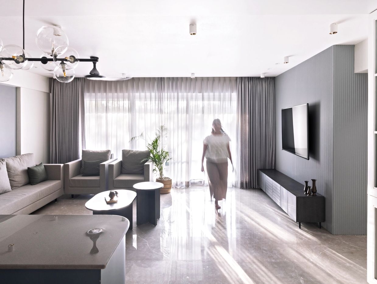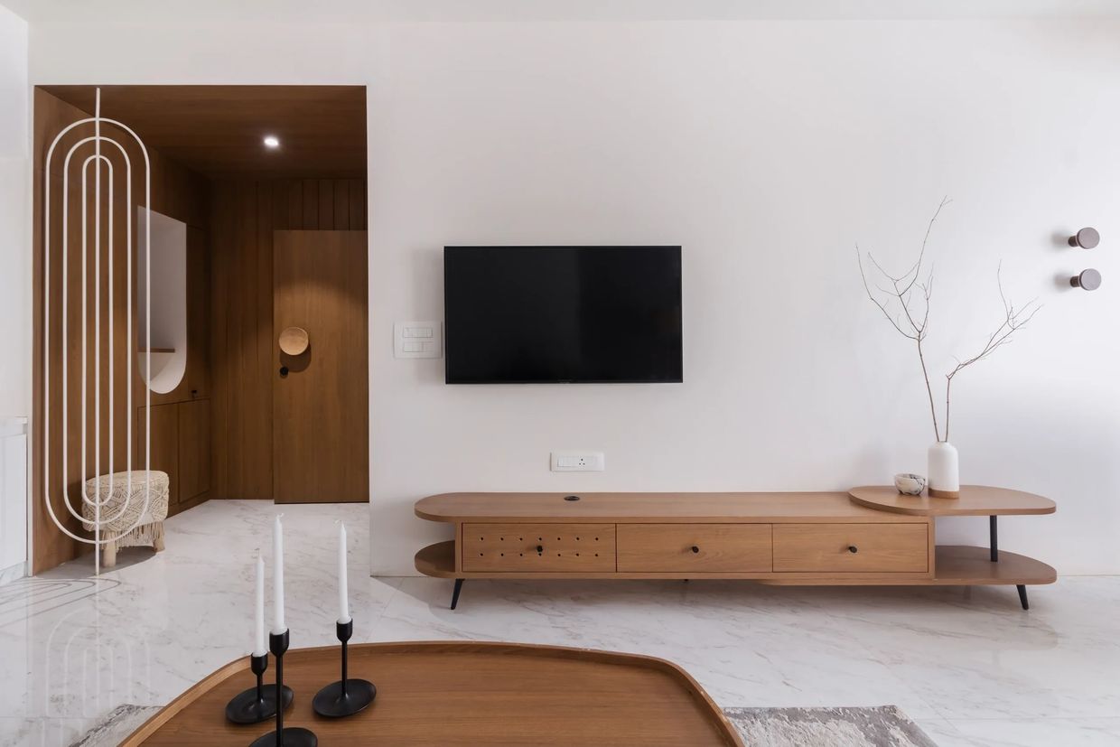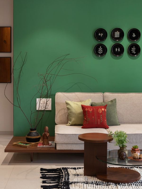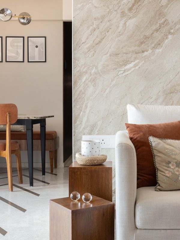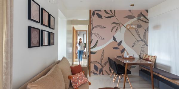 The first thing you notice about the interiors is the soft tranquil colours. The color palette was intentionally kept muted to align with the client brief. With a tight space of 800 sq ft and with a limited colour scheme, the designer looked to natural light and tranquil shades of mint, french vanilla and coffee brown to visually expand the space.